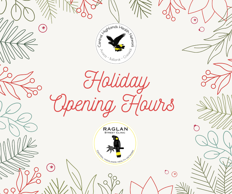 We will be closed completely at CHHN Creswick and Avoca from Tuesday 23rd of December until Monday 5th of January 2026.